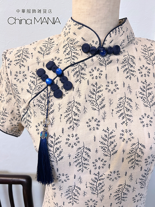 【旗袍】青×ひょうたん×七分袖【秋冬新作】
