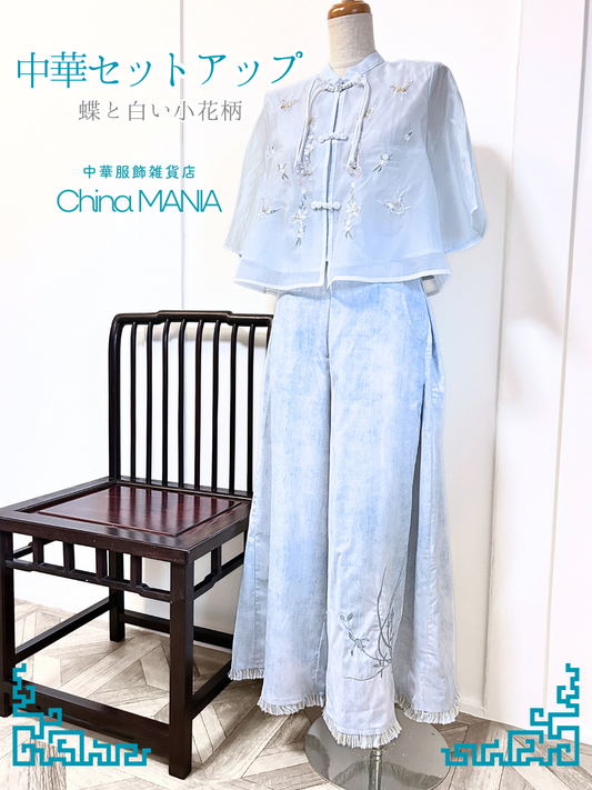 【旗袍】クリーム×蝶と花【秋冬新作】