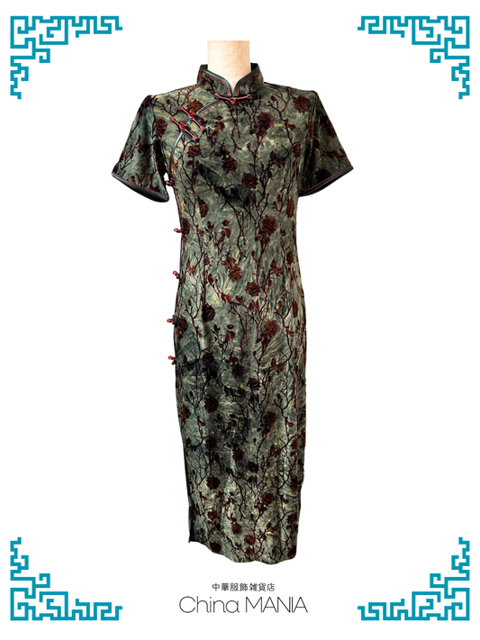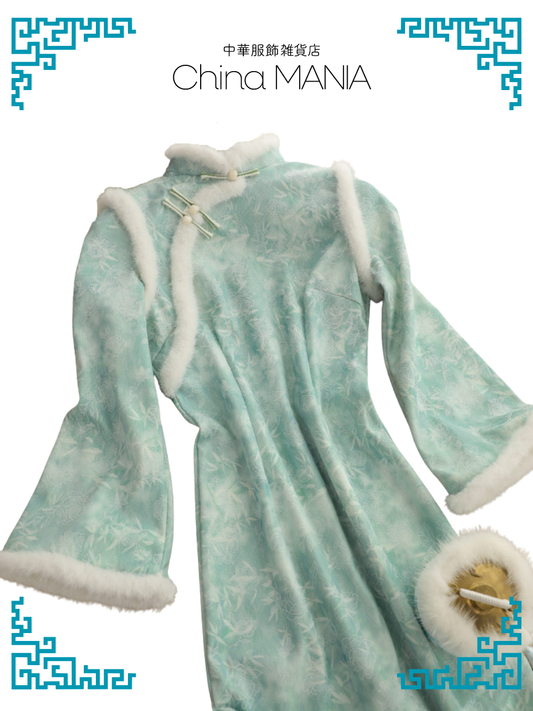 【旗袍】青緑×蝶と薔薇【秋冬新作】