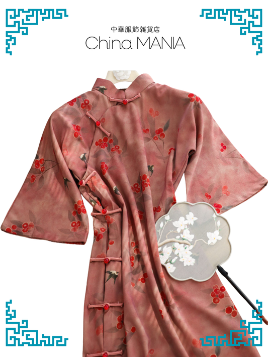 【旗袍】紅×鳥×赤い実【秋冬新作】