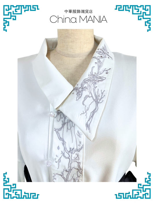 売り切れ【ブラウス】白長袖シャツ×刺繍