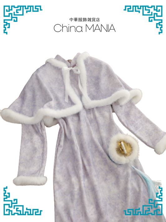 【旗袍】ラベンダー×ケープ付き【秋冬新作】