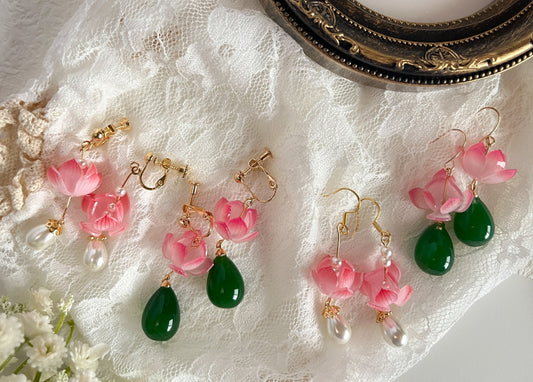 売り切れ【ピアス/イヤリング】翠玉荷花/珠宮蓮華