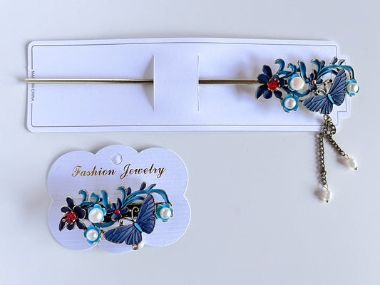 【かんざし/バレッタ】戯碧蝶(ぎへきちょう)