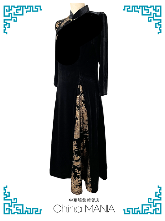 【旗袍ワンピ】黒×金×ワンピース【秋冬新作】