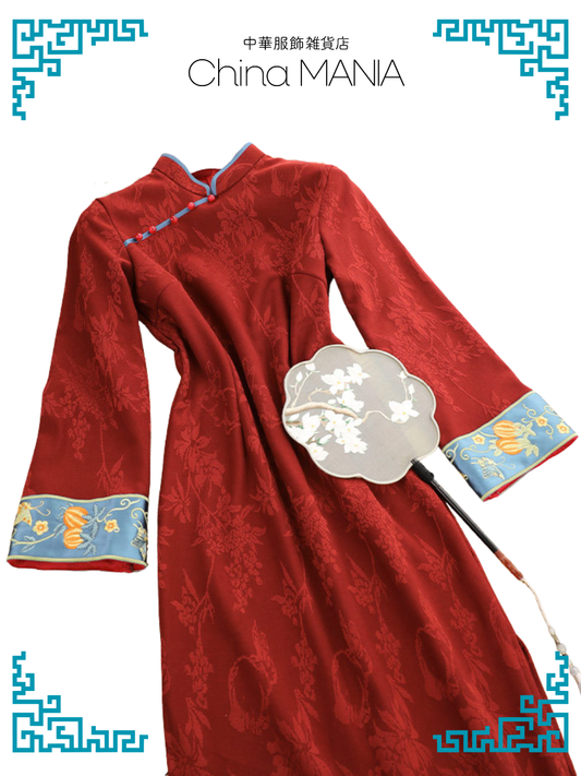 【旗袍】紅×鳥×赤い実【秋冬新作】