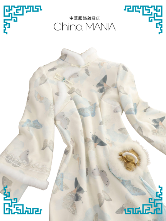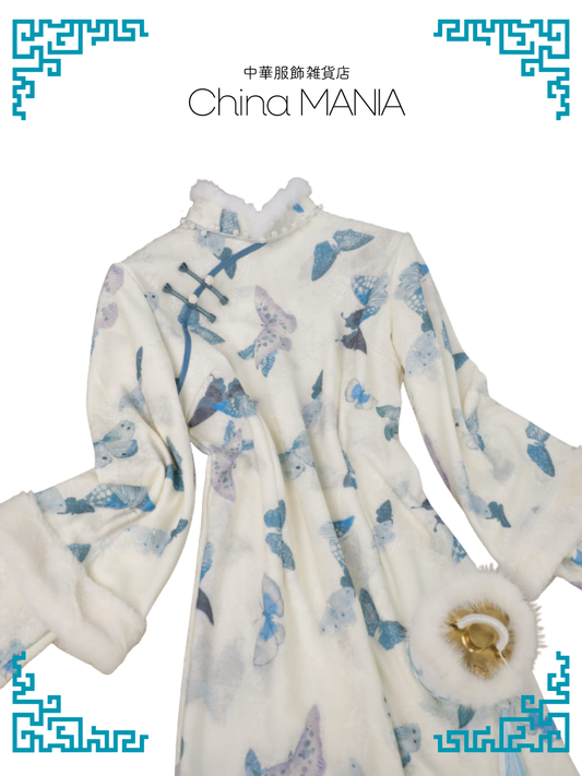 【旗袍】クリーム×蝶と花【秋冬新作】