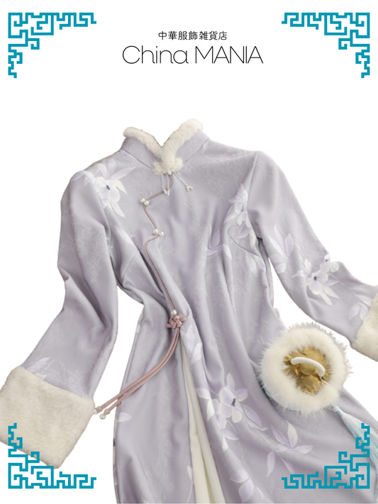 【旗袍】ラベンダー×ケープ付き【秋冬新作】