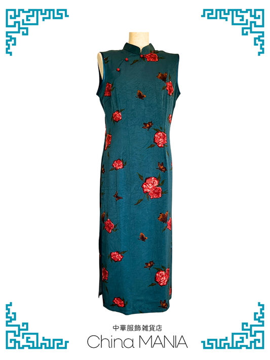 【旗袍】青緑×蝶と薔薇【秋冬新作】