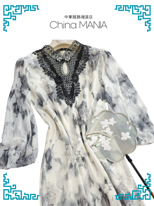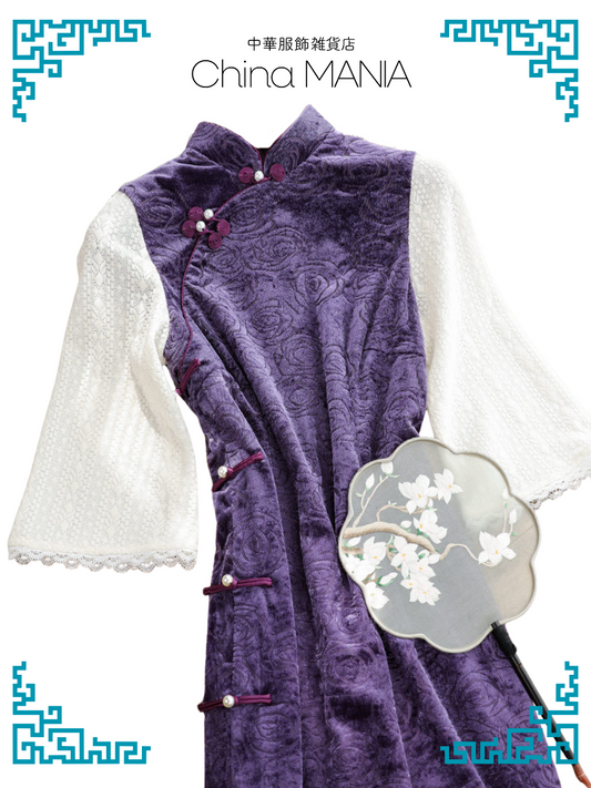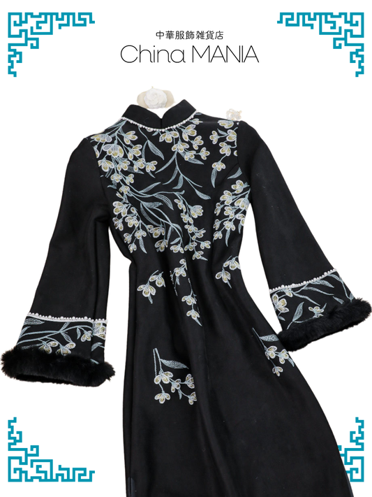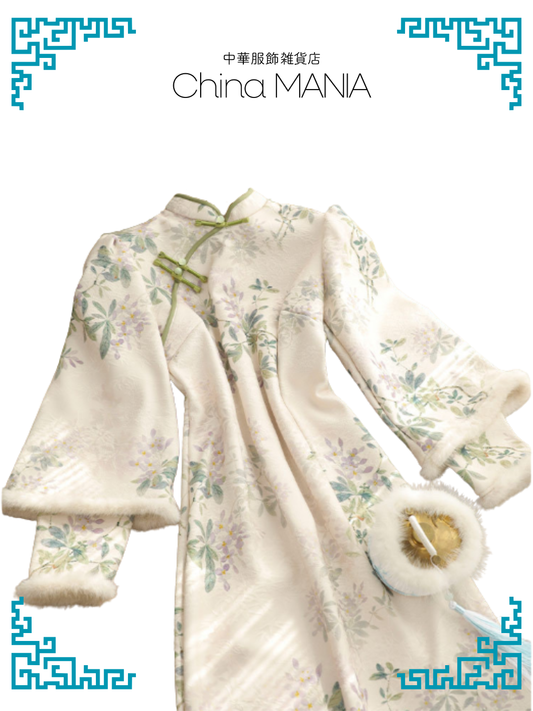 【旗袍】アイボリー×花×長袖【秋冬新作】