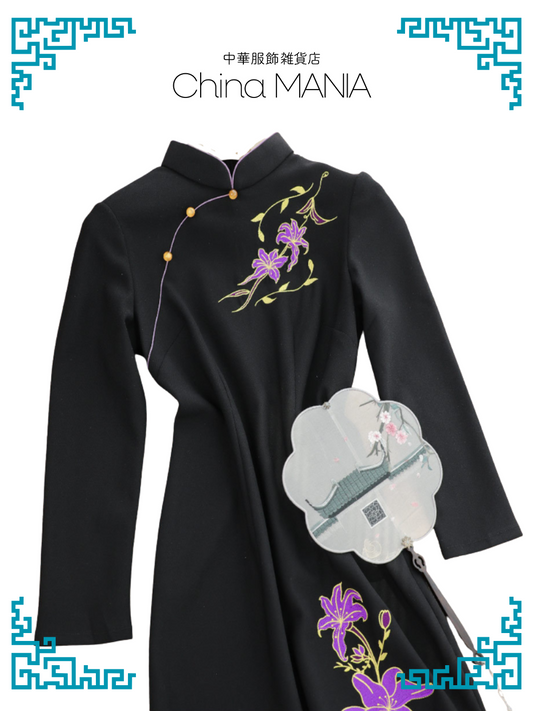 【旗袍ワンピ】黒×金×ワンピース【秋冬新作】