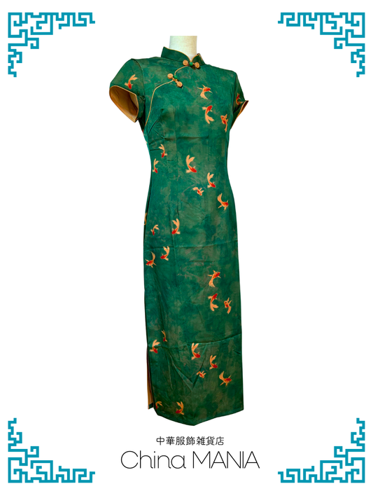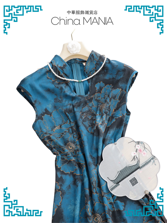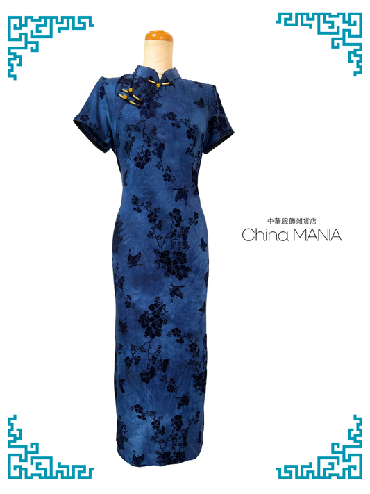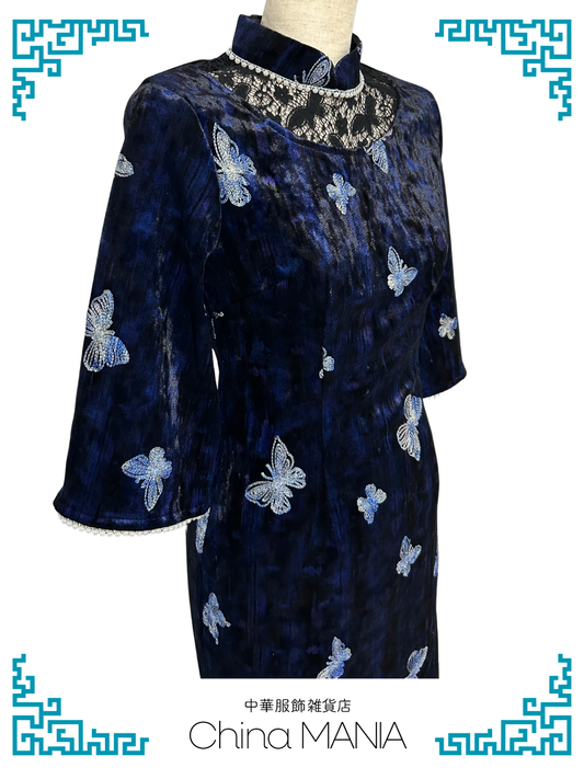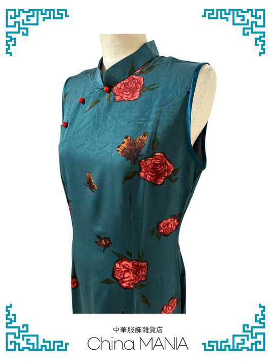 【旗袍】青緑×蝶と薔薇【秋冬新作】
