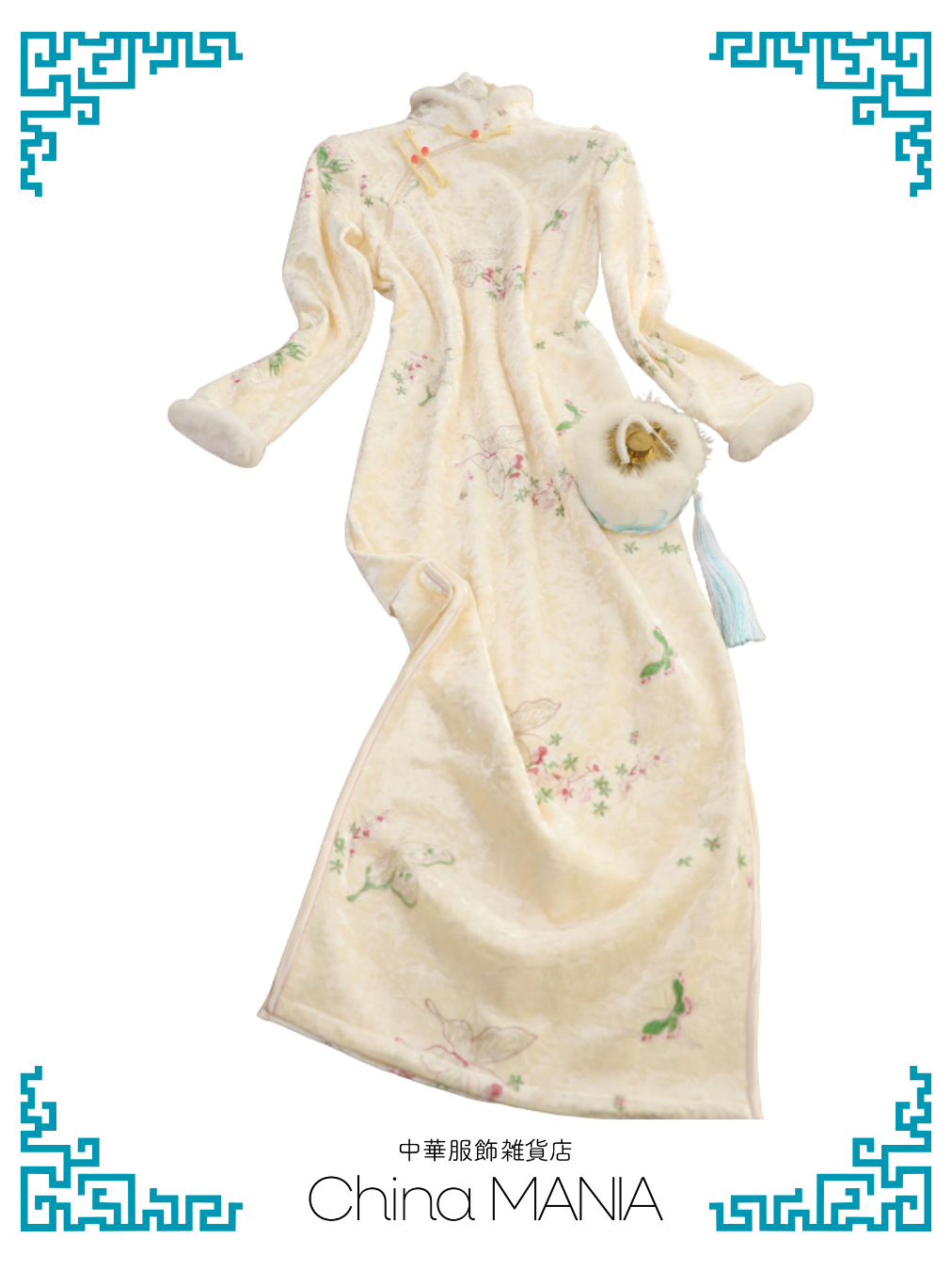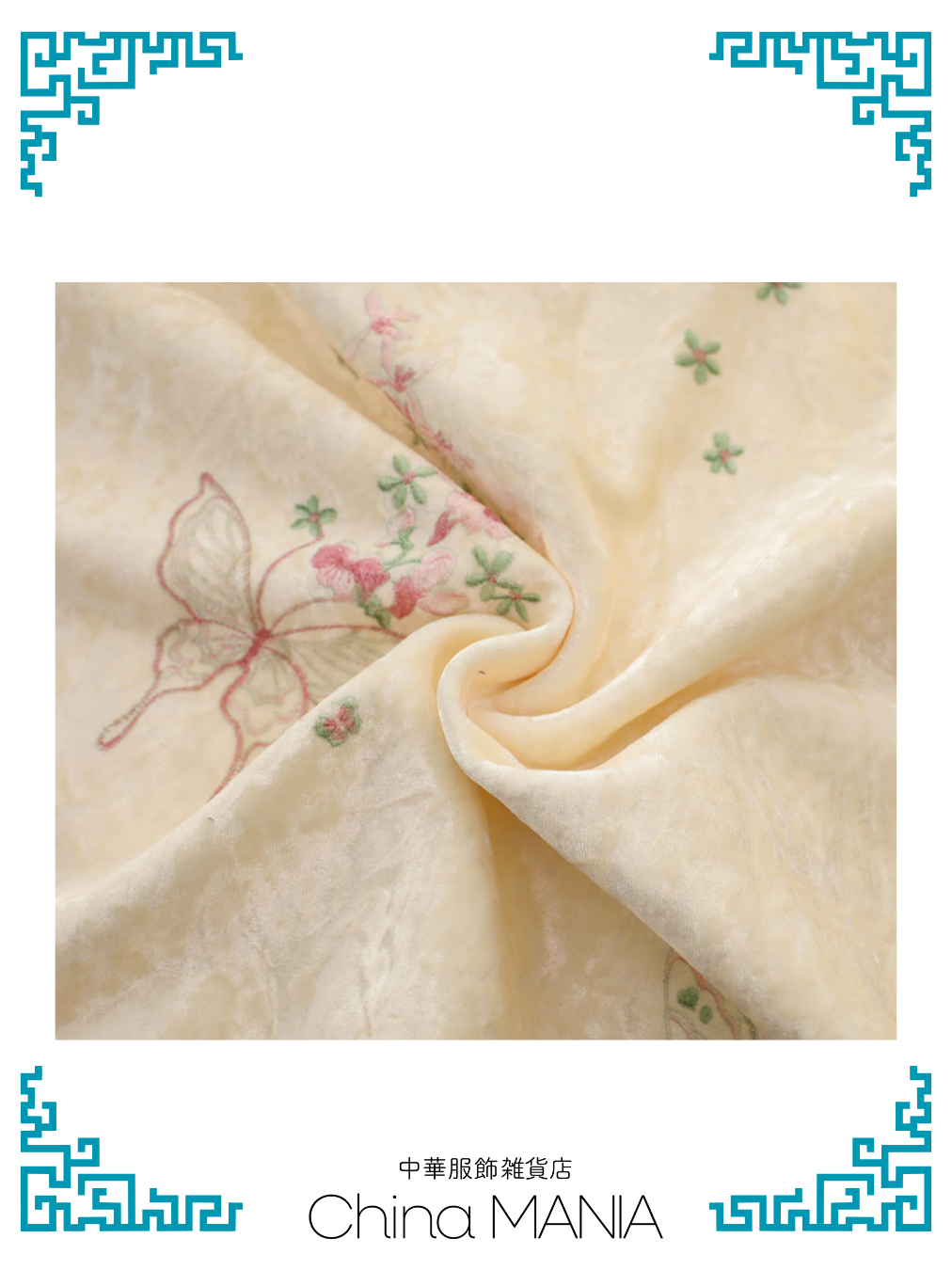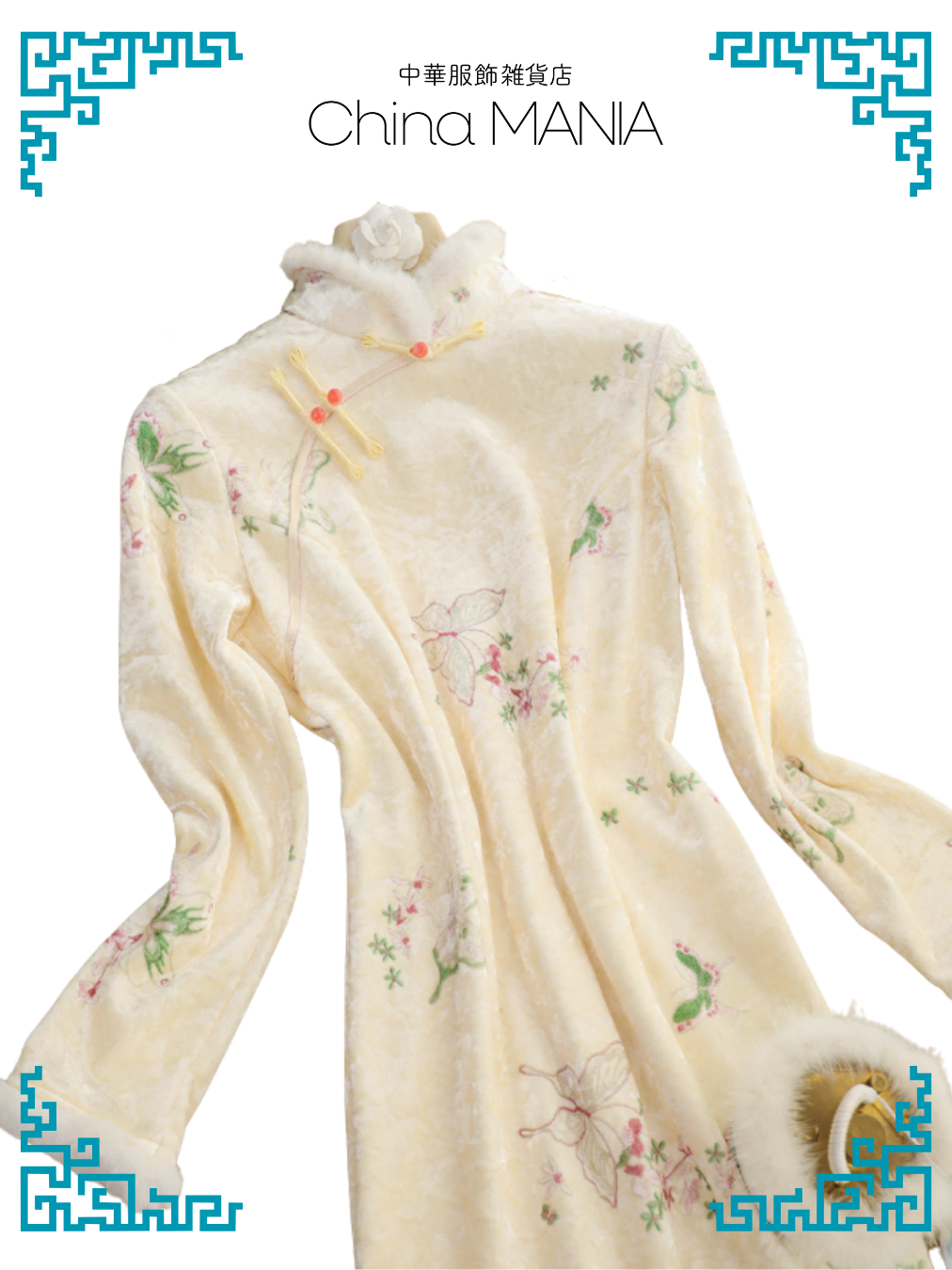 【旗袍】クリーム×蝶と花【秋冬新作】