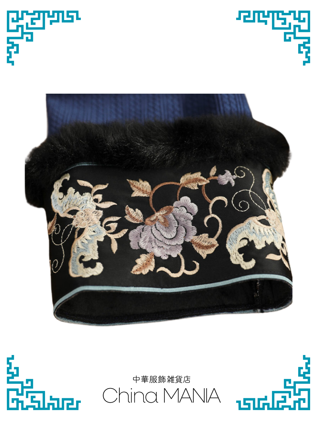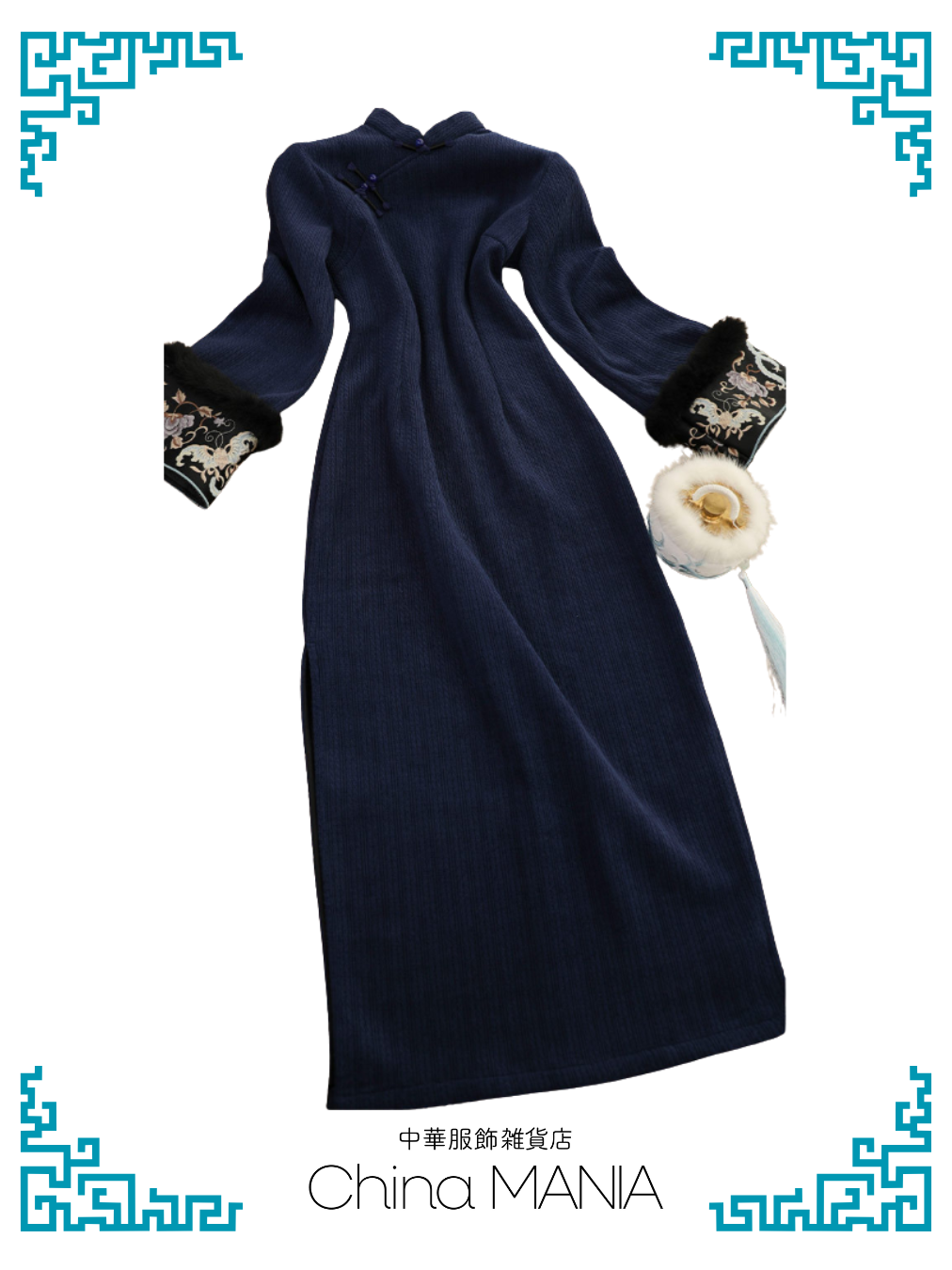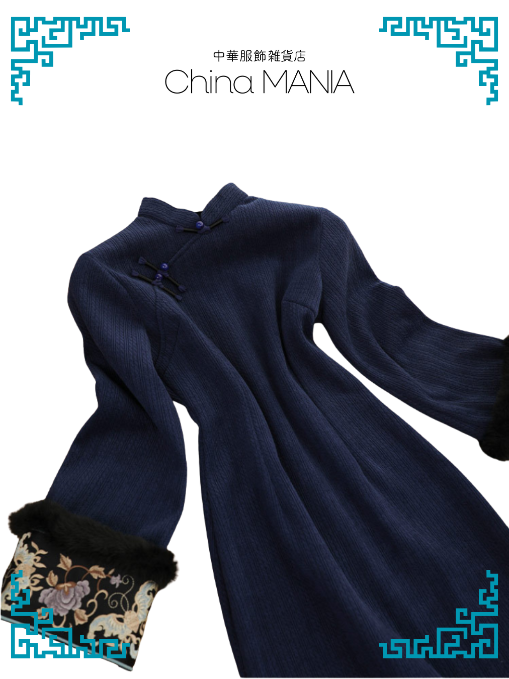 【旗袍】紺×刺繍【秋冬新作】