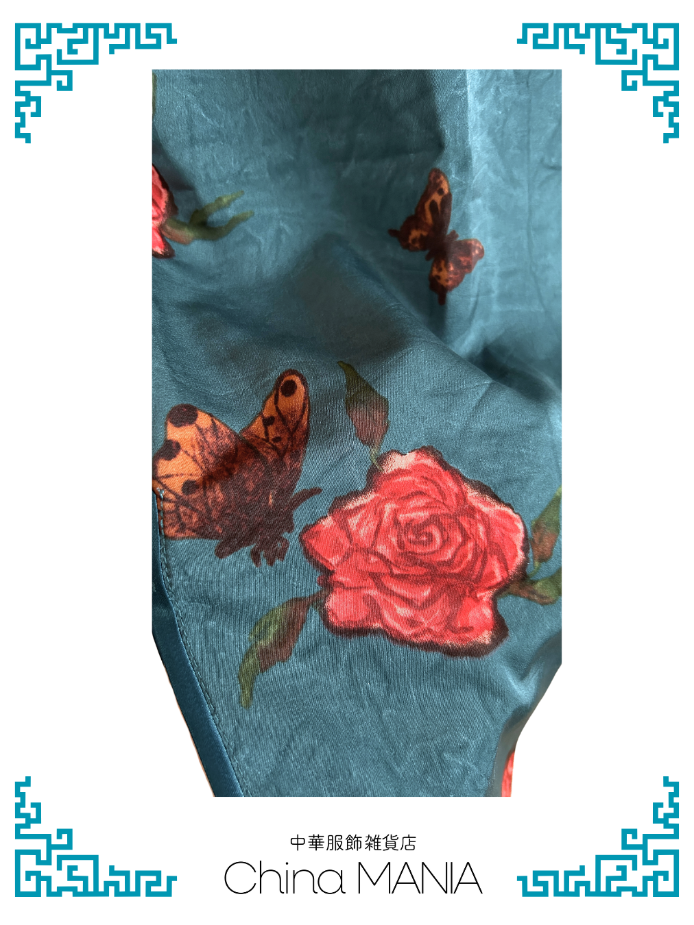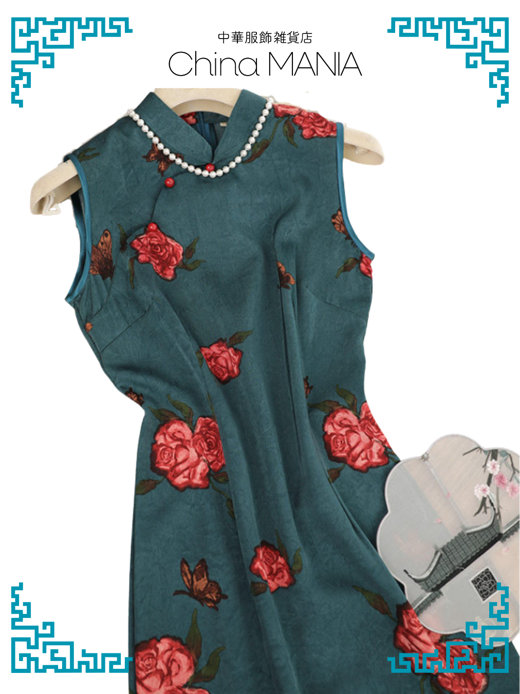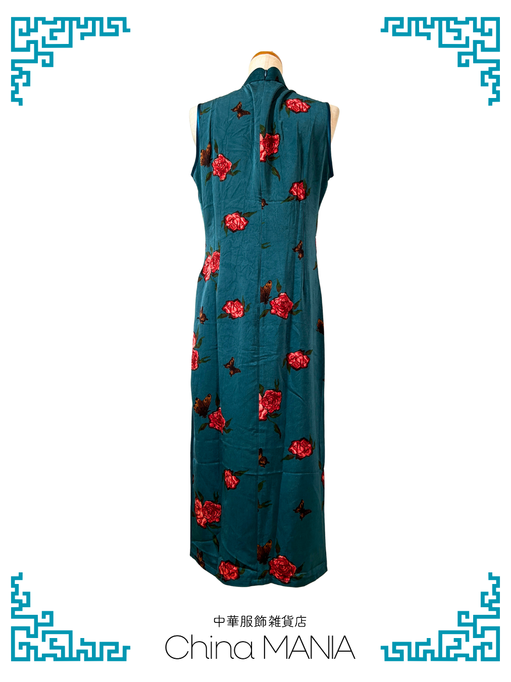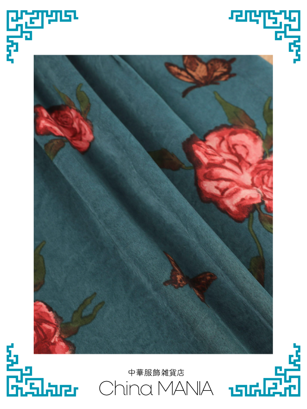 【旗袍】青緑×蝶と薔薇【秋冬新作】
