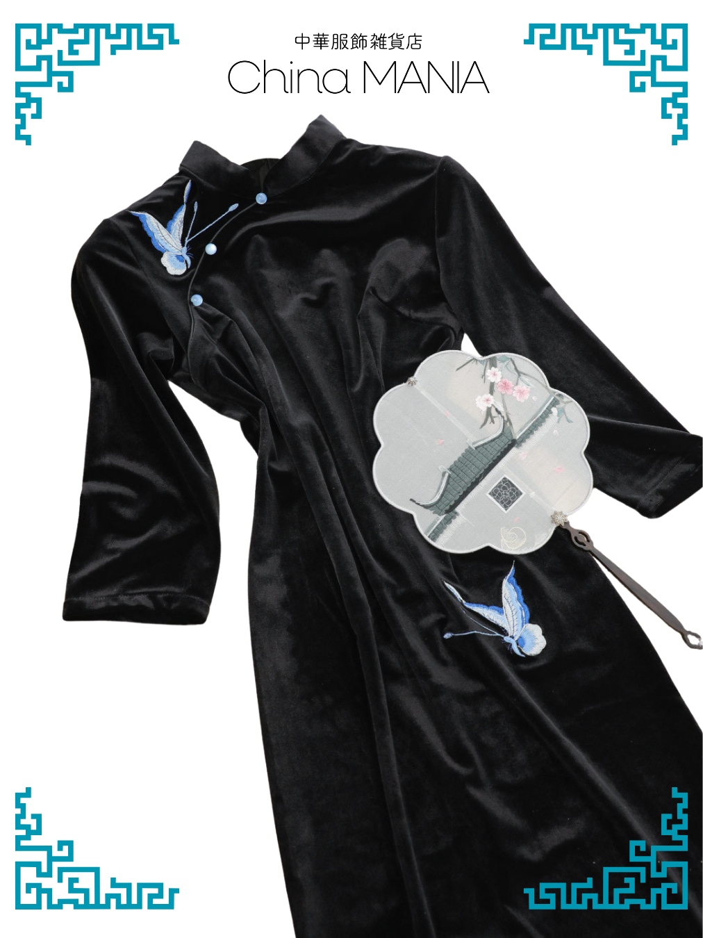 【旗袍】黒×蝶【秋冬新作】