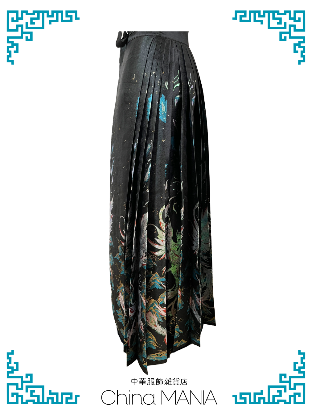 鳳凰と山水をテーマにした華やかな織金工芸の馬面裙。