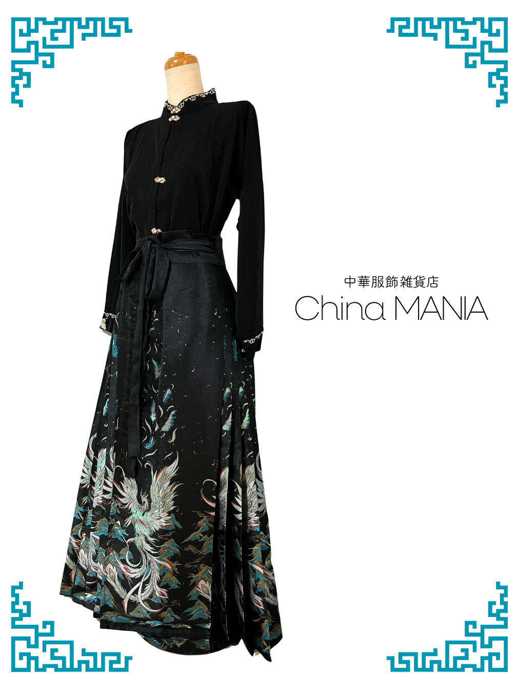 その他:とても煌びやかな馬面裙です。トップスや羽織物はシンプルなもので十分素敵なコーディネイトになります。柄部分は印刷ではなく糸で表現されています。