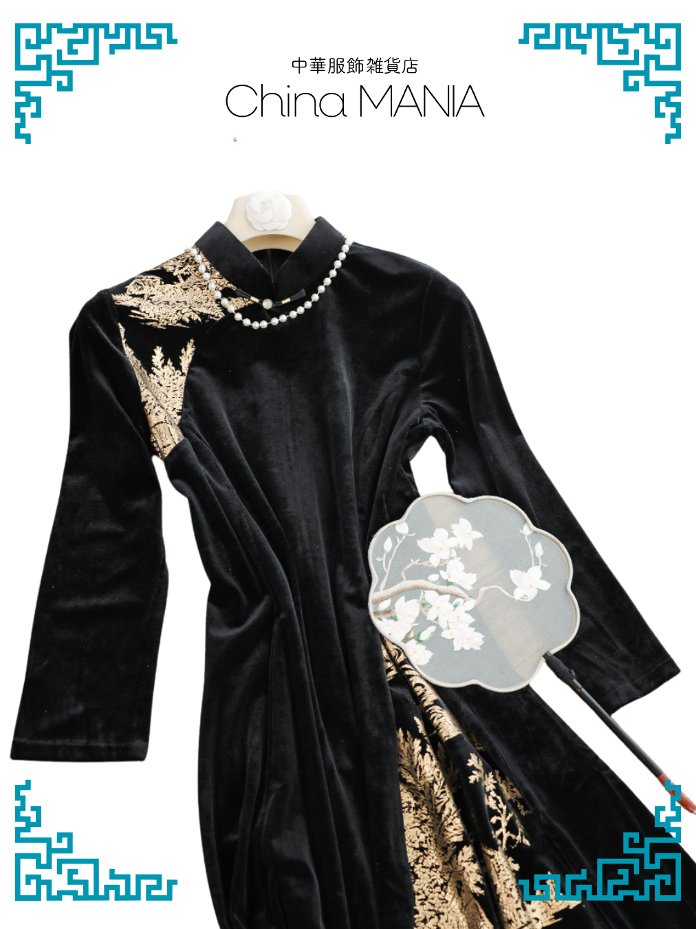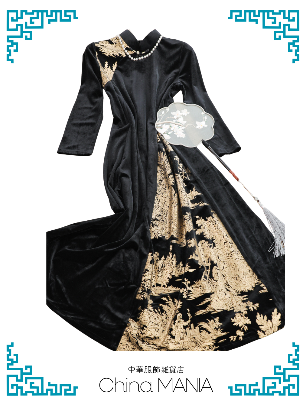 【旗袍ワンピ】黒×金×ワンピース【秋冬新作】