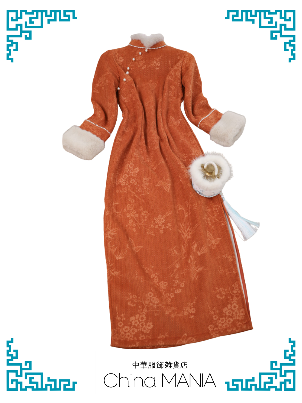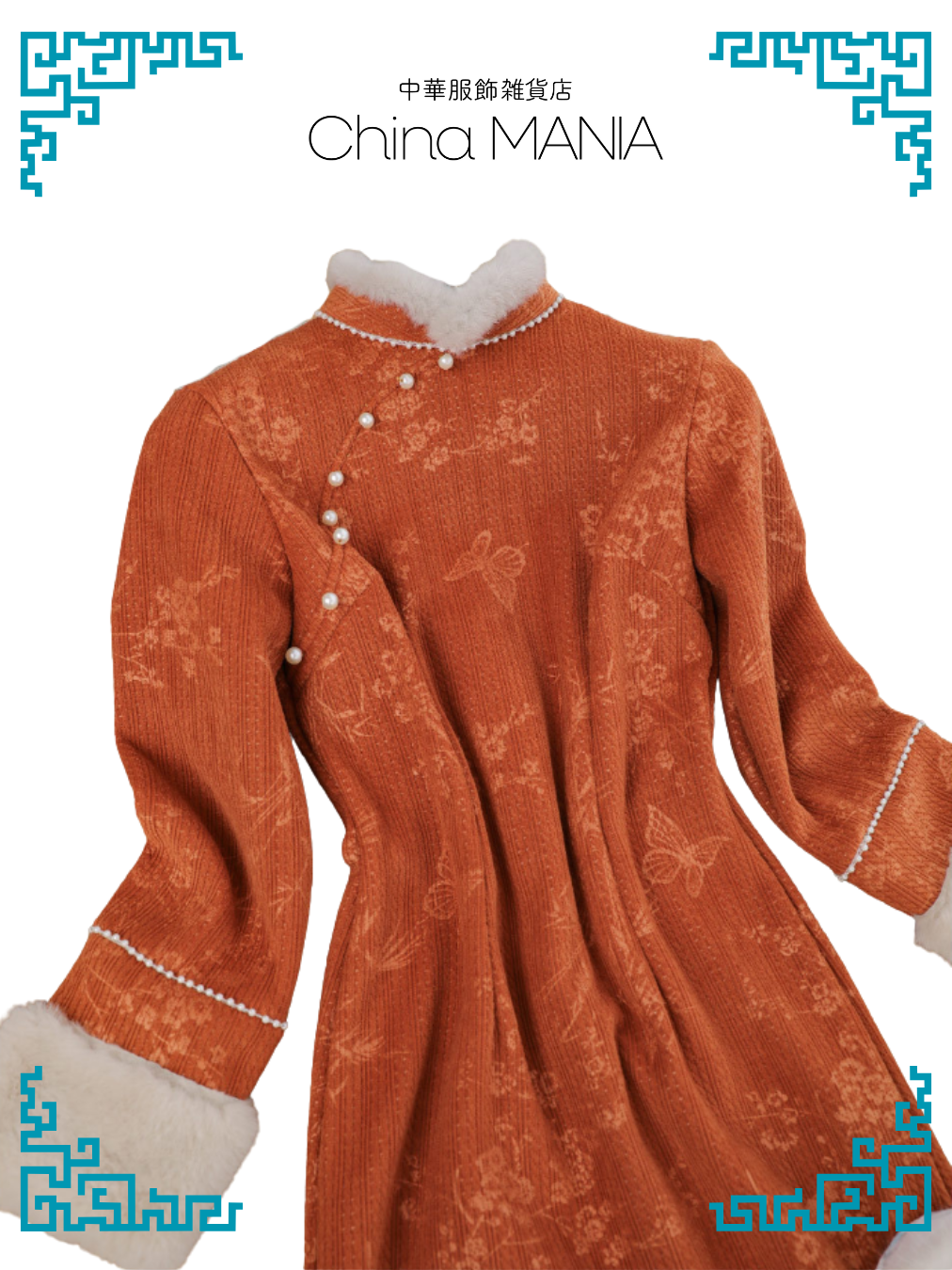 【旗袍】橙×蝶と小花【秋冬新作】