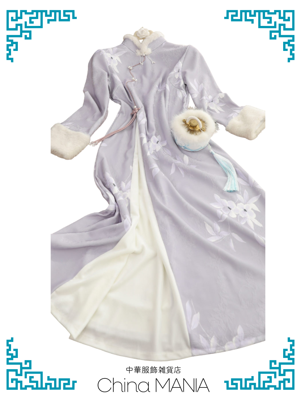 【旗袍ワンピ】紫×花×ワンピース【秋冬新作】