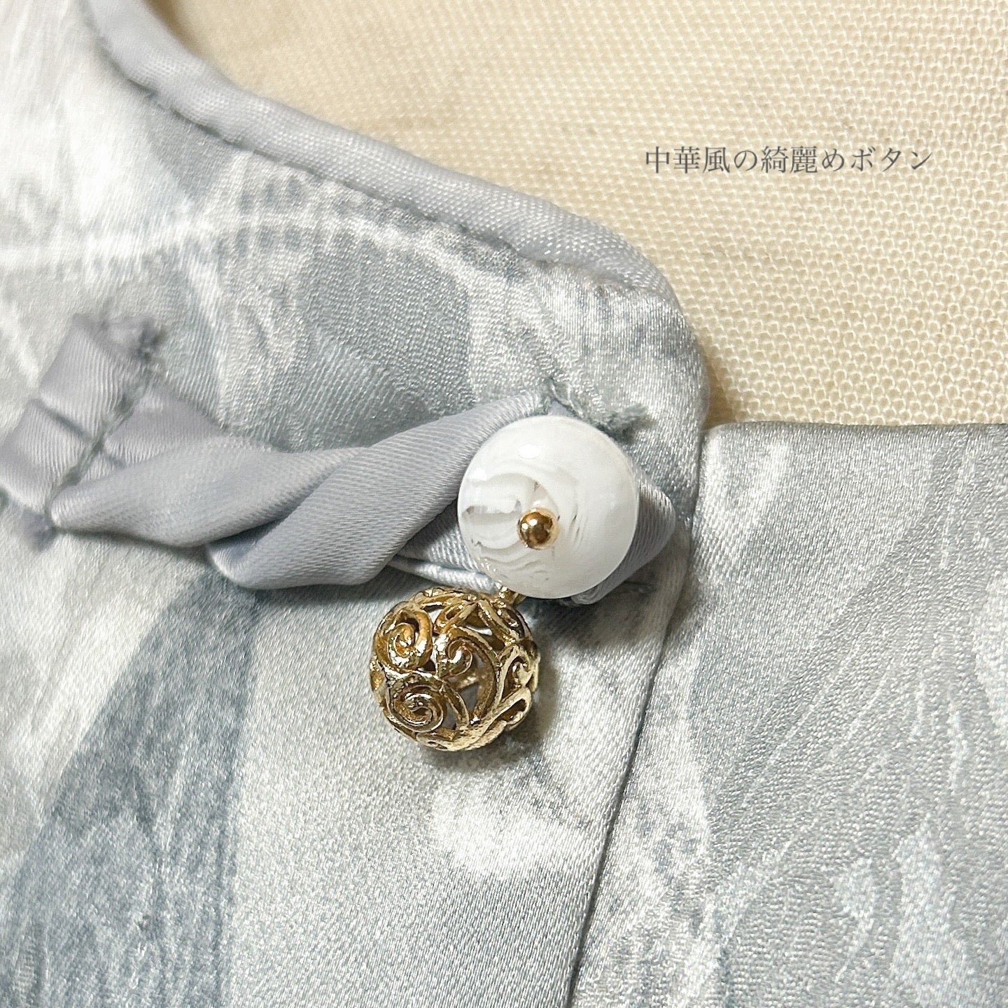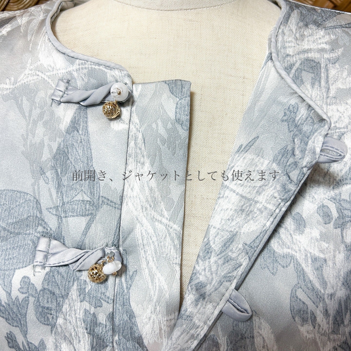 おしゃれな中華ボタンと長めのゆったりした袖がポイント。